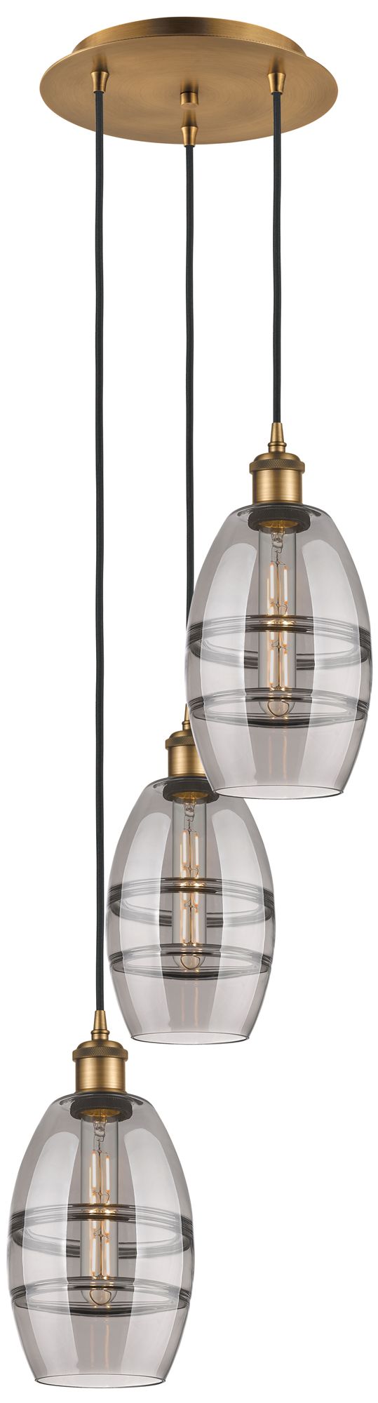 Ballston Vaz 12.38"W 3-Light Brushed Brass Corded Pendant w/ Smoke Sha