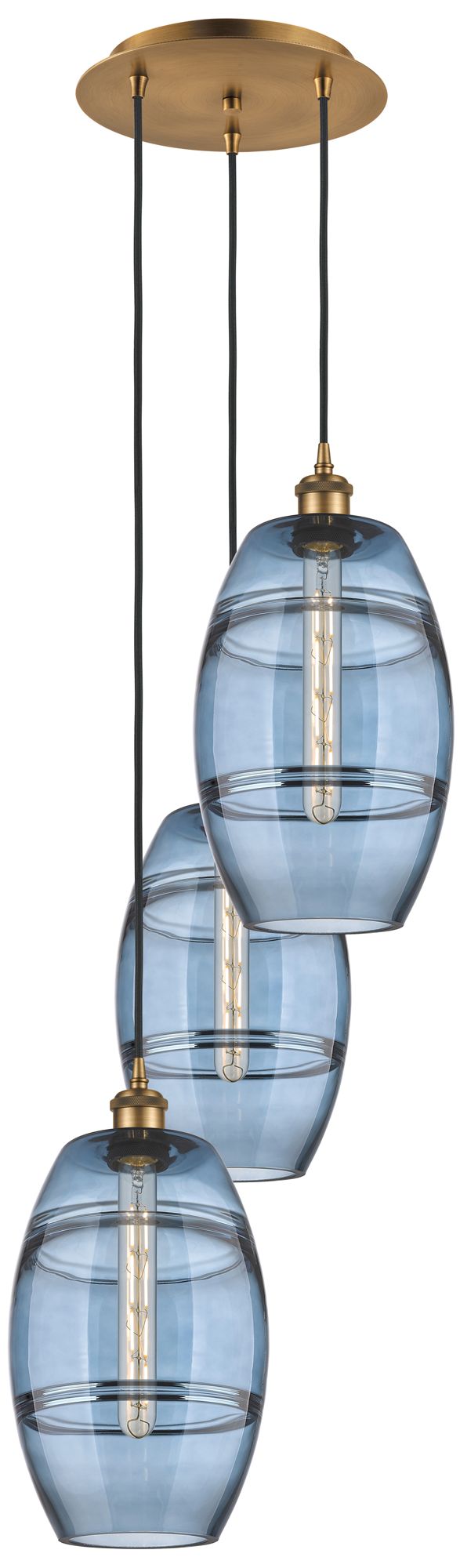 Ballston Vaz 14.5"W 3-Light Brushed Brass Corded Pendant w/ Blue Shade
