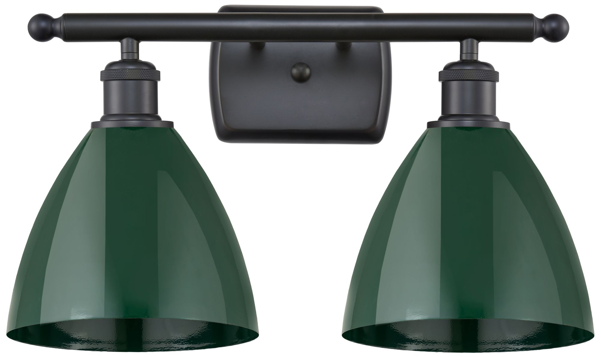 Plymouth Dome 17.5"W 2 Light Matte Black Bath Vanity Light w/ Green Sh