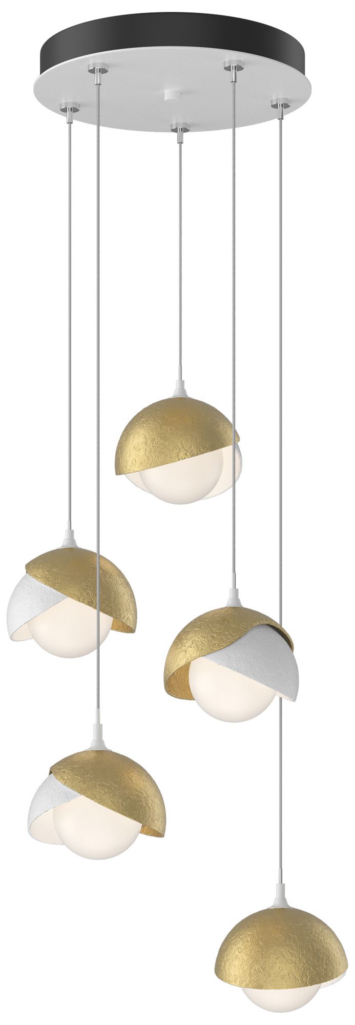 Brooklyn 16"W 5-Light Modern Brass Accented White Long Double Shade Pe