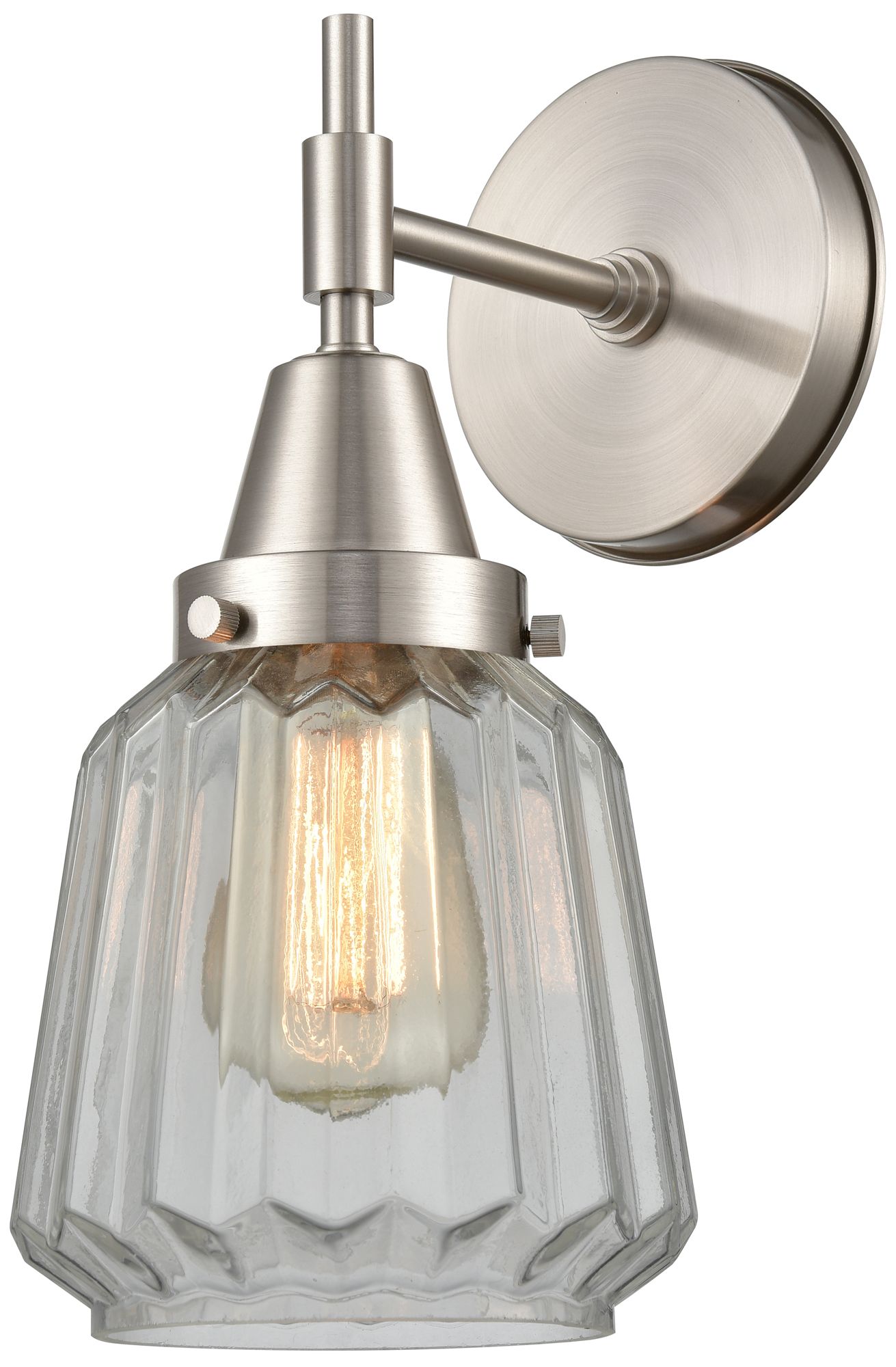 Caden Chatham 12" High Satin Nickel Sconce w/ Clear Shade