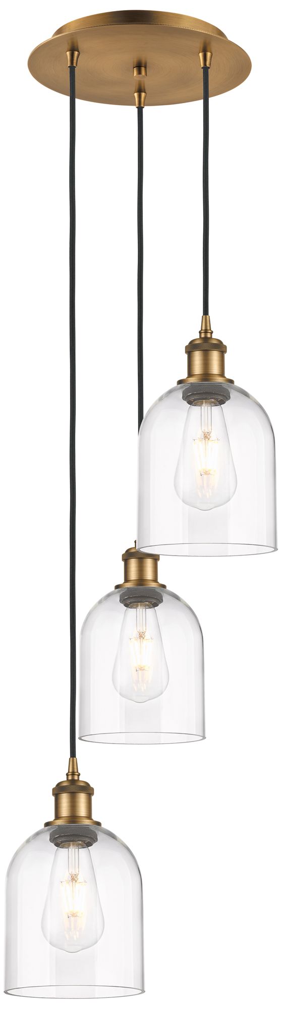 Ballston Bella 12"W 3-Light Brushed Brass Corded Pendant w/ Clear Shad