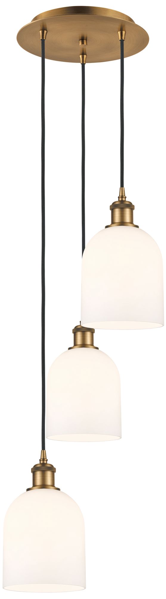 Ballston Bella 12"W 3-Light Brushed Brass Cord Pendant w/ Gloss White