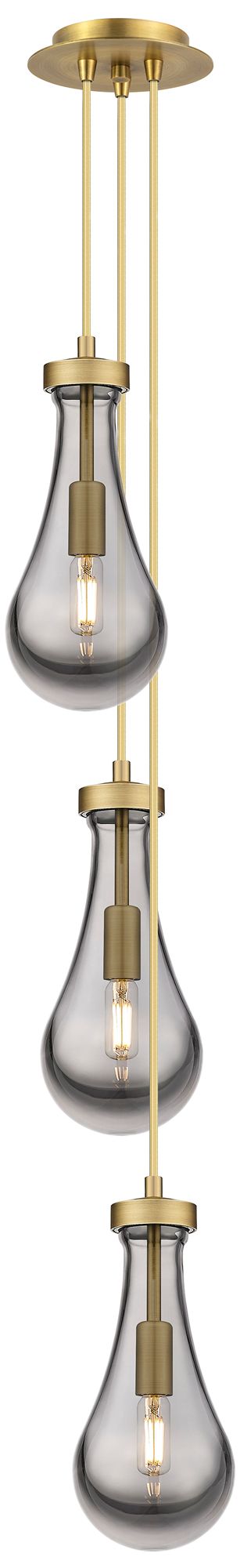 Malone 13.5"W 3 Light Brushed Nickel Multi Pendant w/ Striped Clear Sh