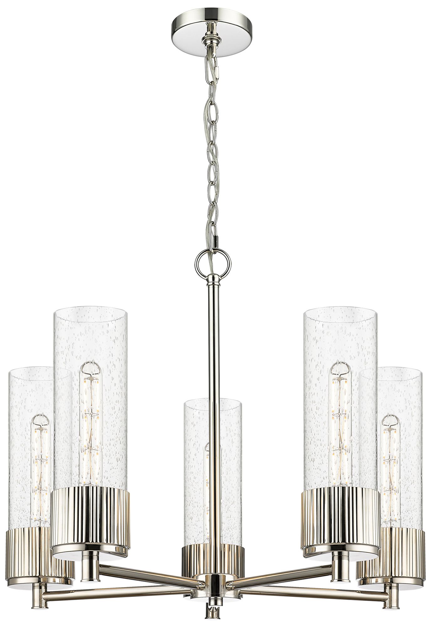 Bolivar 25"W 5 Light Polished Nickel Chain Hung Chandelier With Seedy