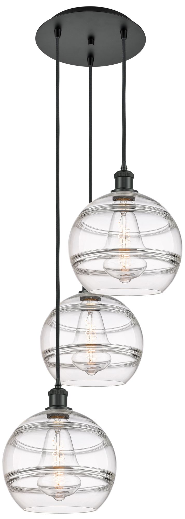 Ballston Rochester 16.5"W 3-Light Matte Black Corded Pendant w/ Clear