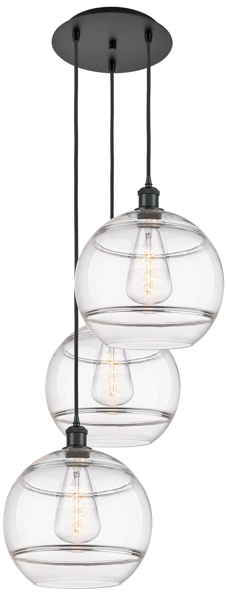 Ballston Rochester 18.5"W 3-Light Matte Black Corded Pendant w/ Clear