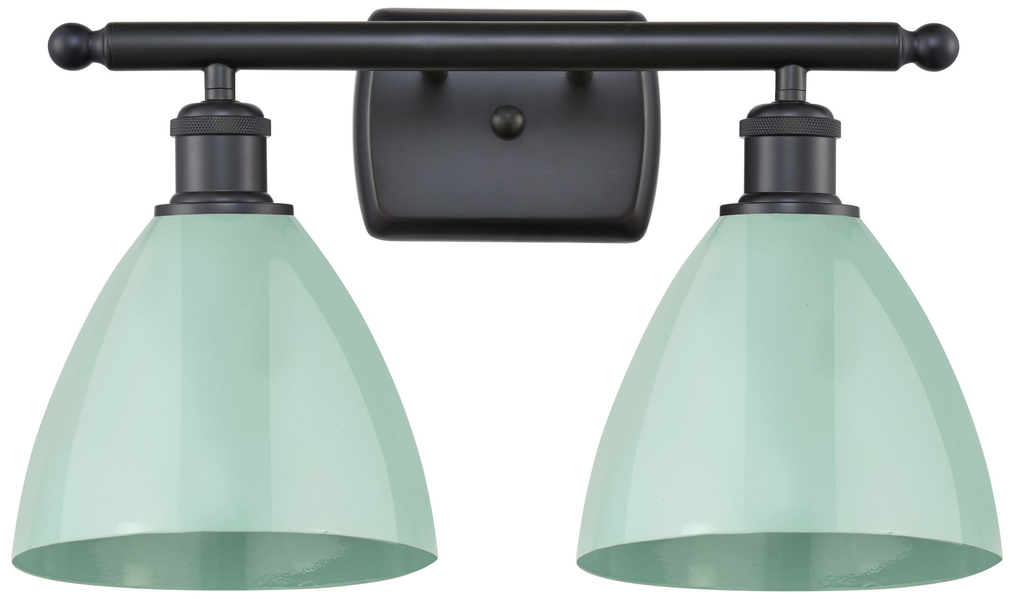 Plymouth Dome 17.5"W 2 Light Matte Black Bath Vanity Light w/ Seafoam