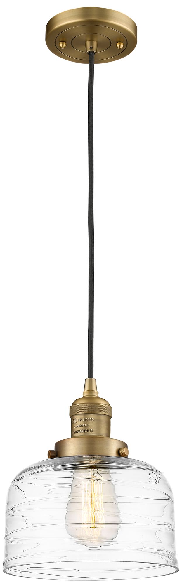 Franklin Bell 8" Wide Brushed Brass Corded Mini Pendant w/ Deco Swirl
