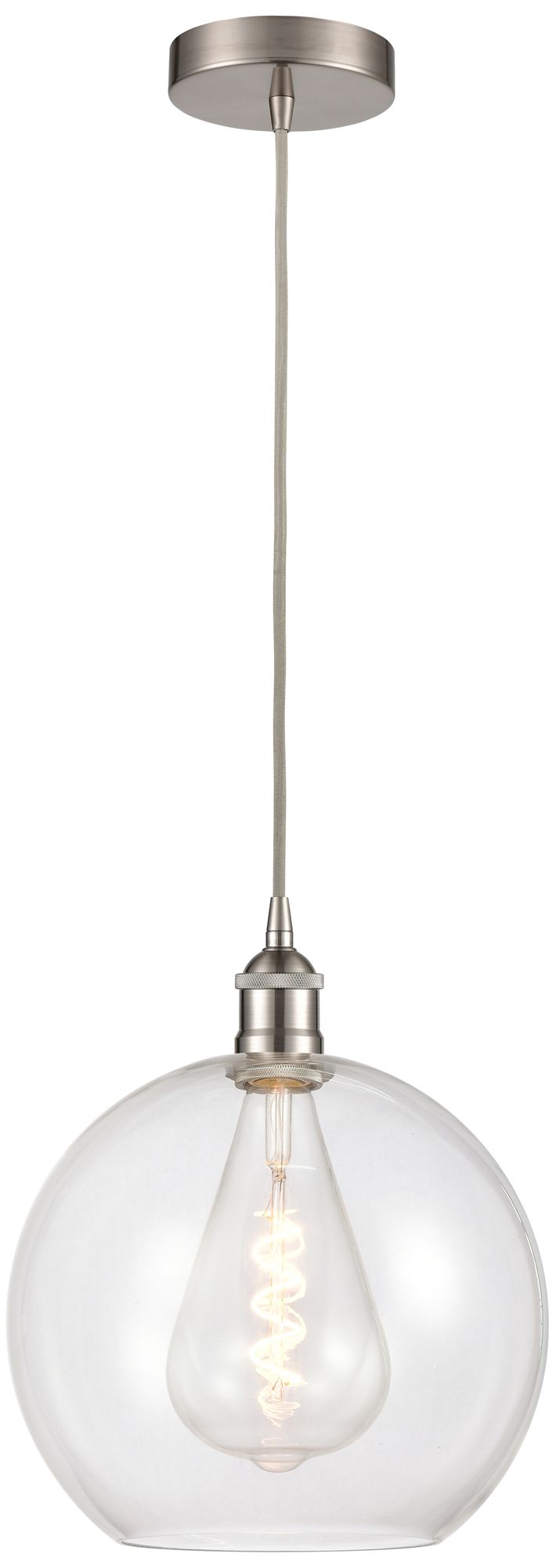 Athens 12" Brushed Satin Nickel Mini Pendant w/ Clear Shade