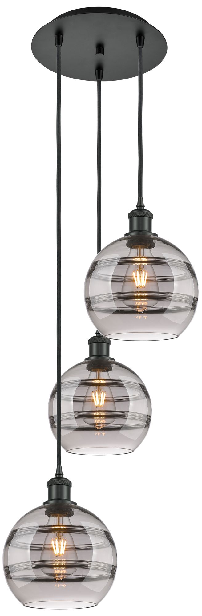 Ballston Rochester 14.5"W 3-Light Matte Black Corded Pendant w/ Smoke