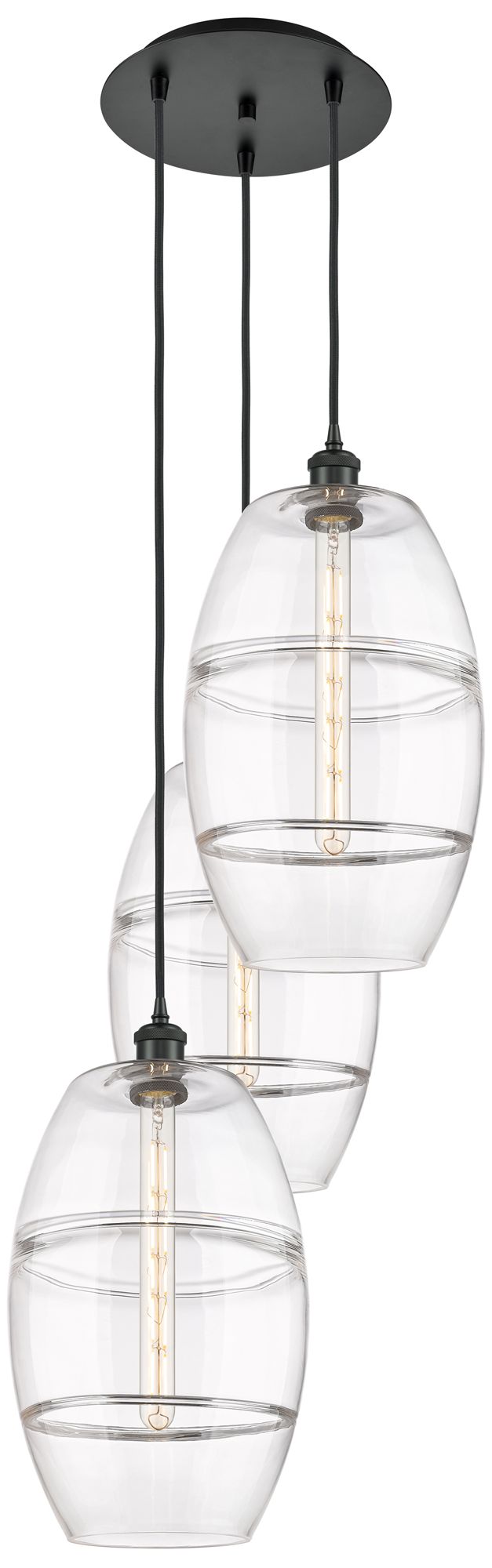 Ballston Vaz 16.5"W 3-Light Matte Black Corded Multi Pendant w/ Clear