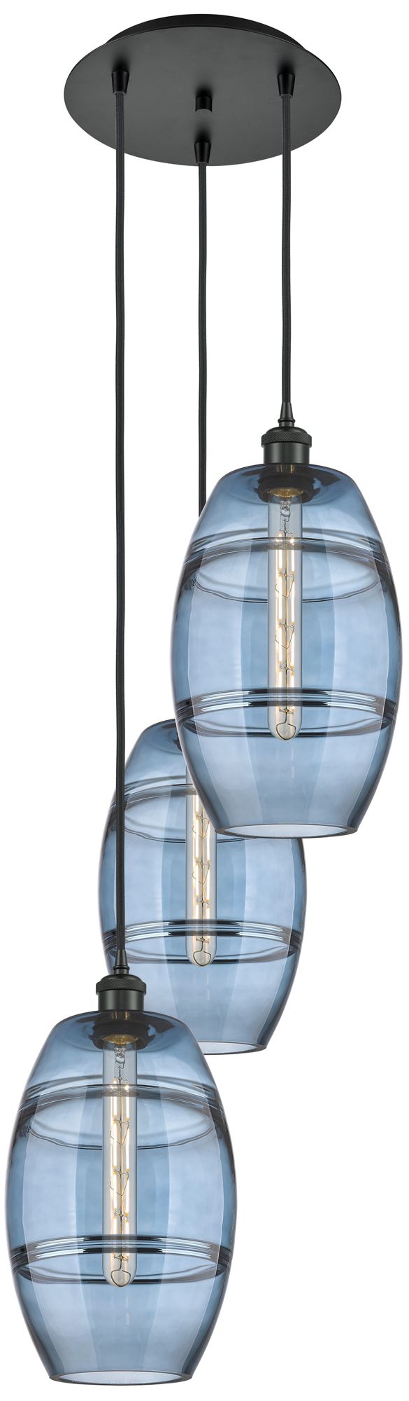 Ballston Vaz 14.5"W 3-Light Matte Black Corded Multi Pendant w/ Blue S