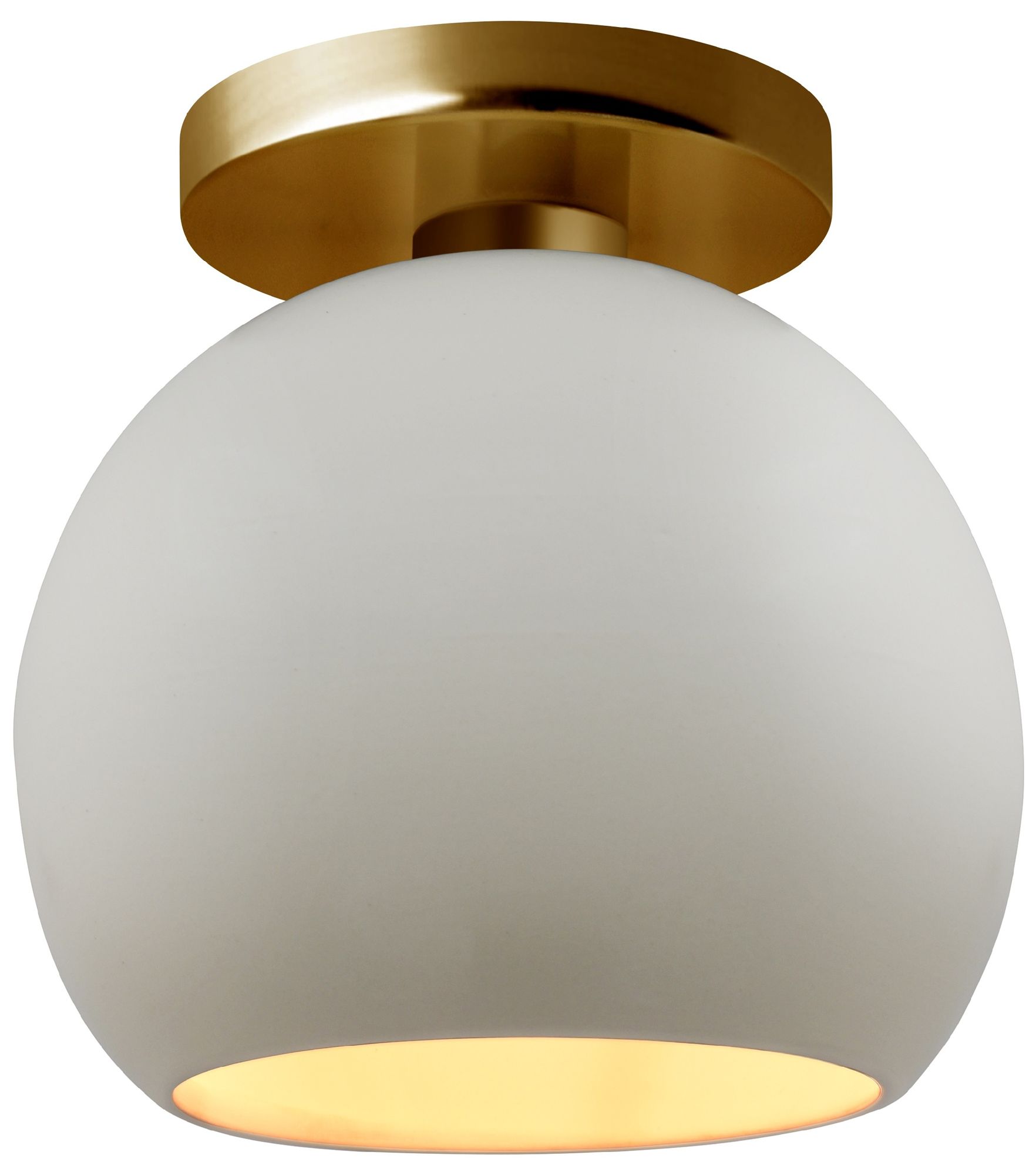 Radiance 10"W Matte White/Gold Frame Brushed Brass Globe LED Semi.Flus