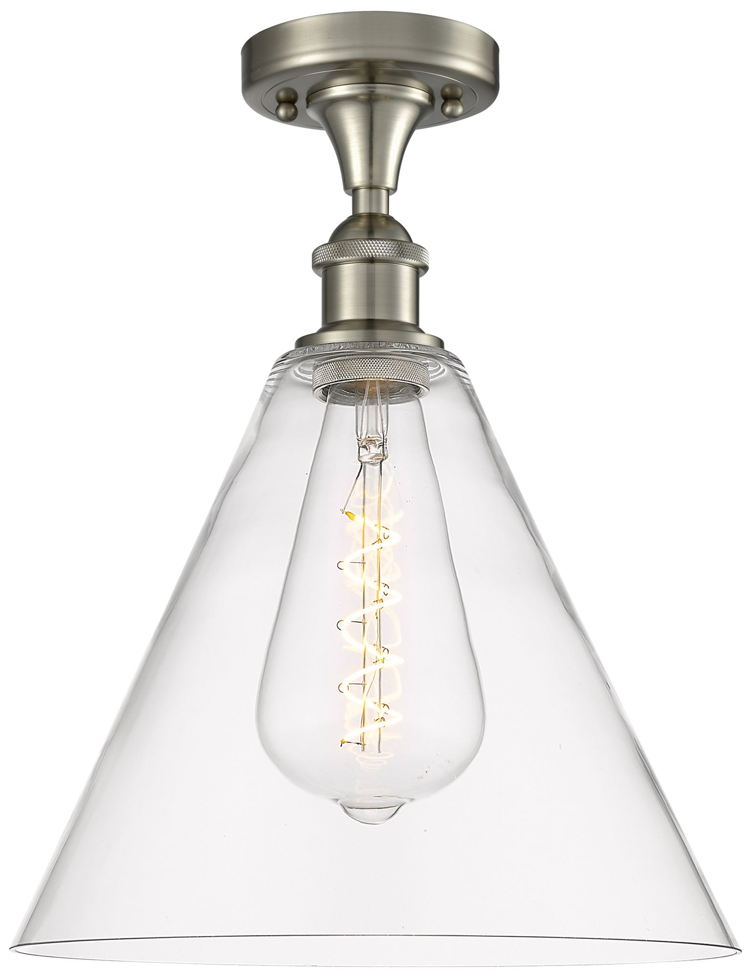 Berkshire Glass 12" Semi-Flush Mount - Brushed Satin Nickel - Clear Sh