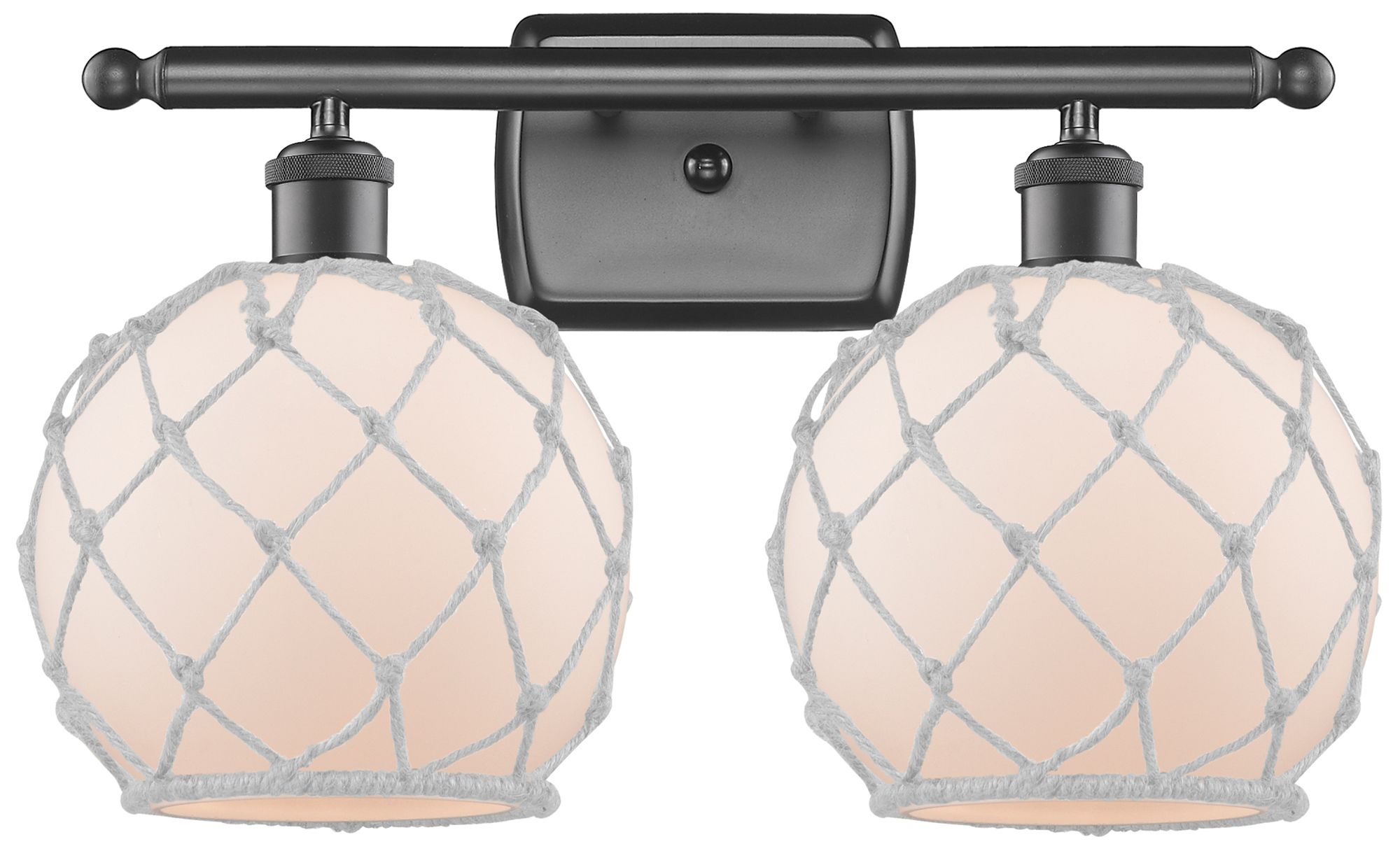 Farmhouse Rope 16"W 2 Light Bronze Bath Light w/ White Rope Shade