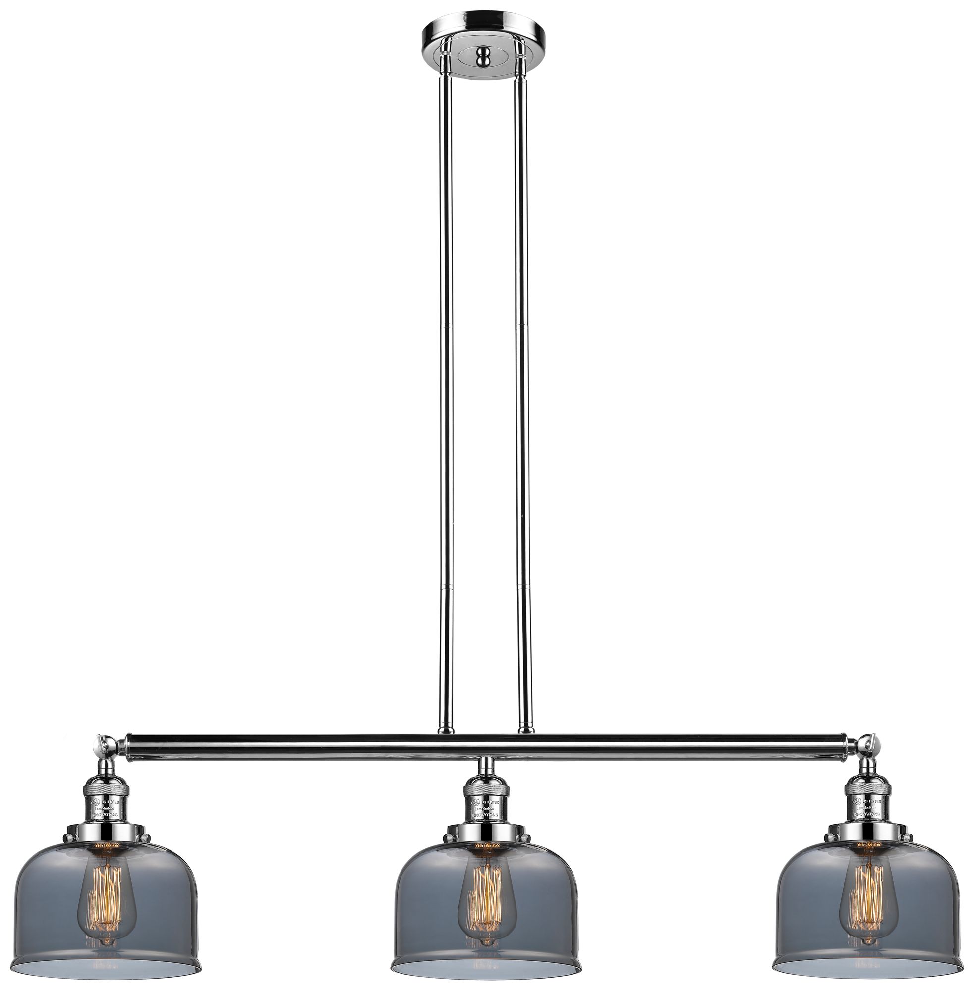 Bell 41" 3-Light Polished Nickel Stemmed Island Light w/ Smoke Shade