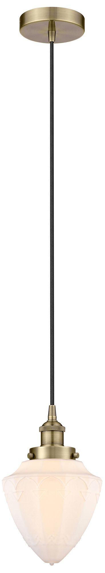 Bullet 7"W Antique Brass Corded Mini Pendant w/ Matte White Shade
