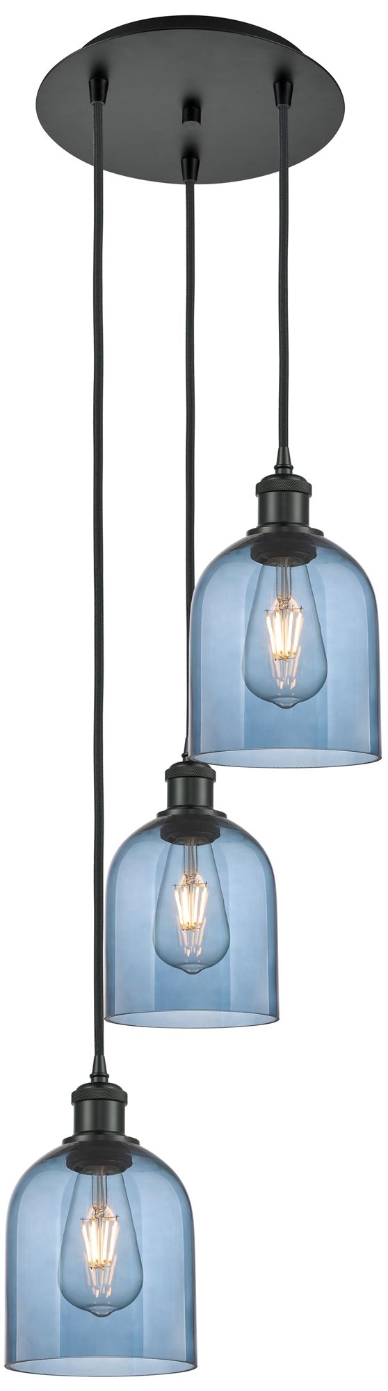 Ballston Bella 12"W 3-Light Matte Black Corded Multi Pendant w/ Blue S