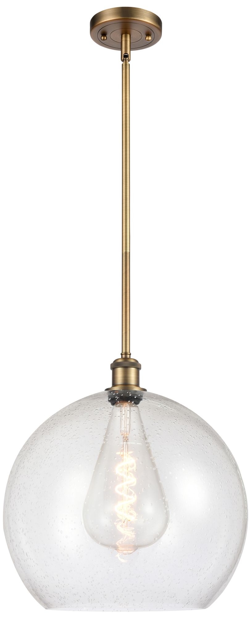 Athens 14" Brushed Brass LED Pendant With Seedy Shade