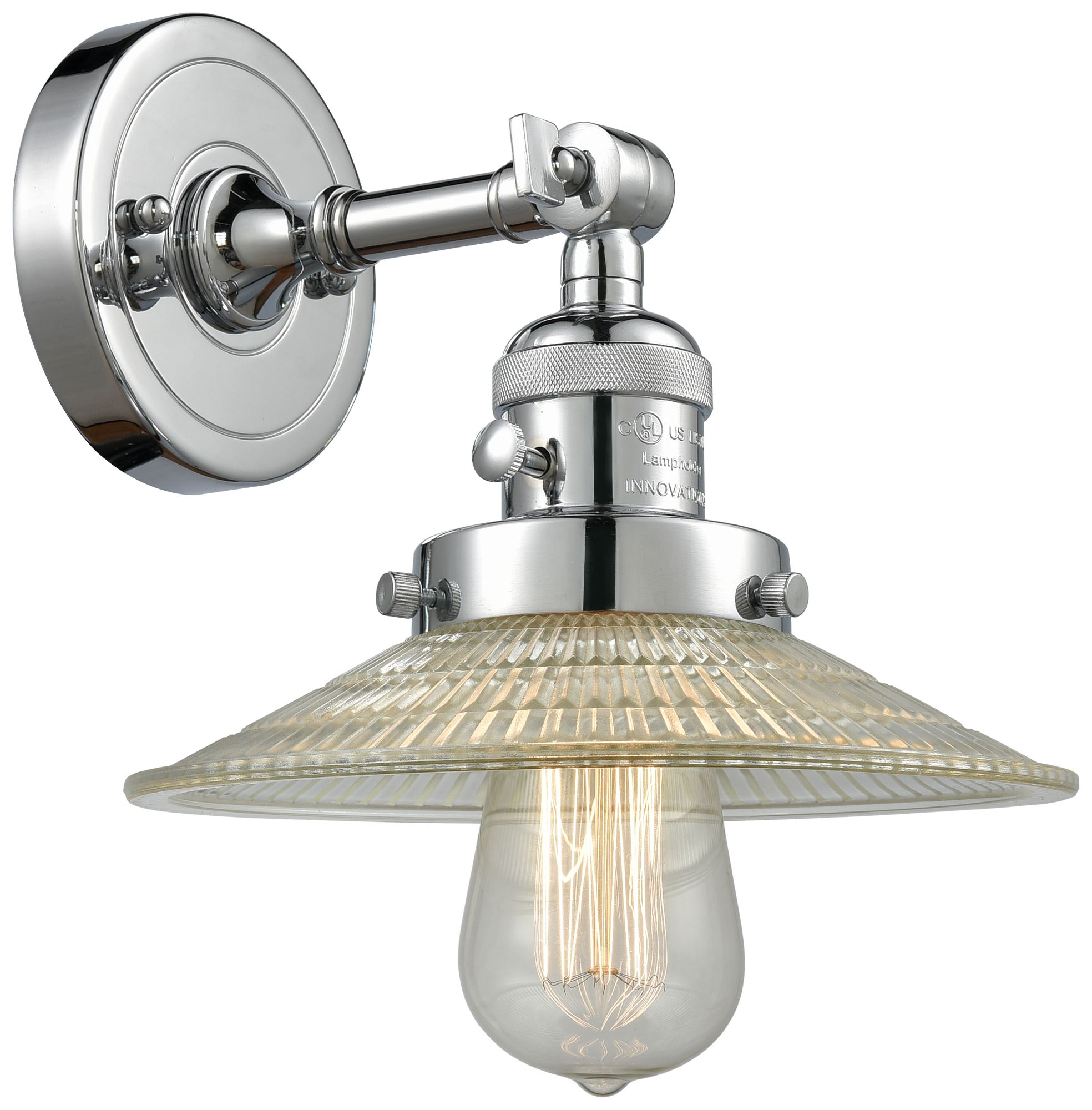 Halophane 8" High Polished Chrome Sconce w/ Clear Halophane Shade