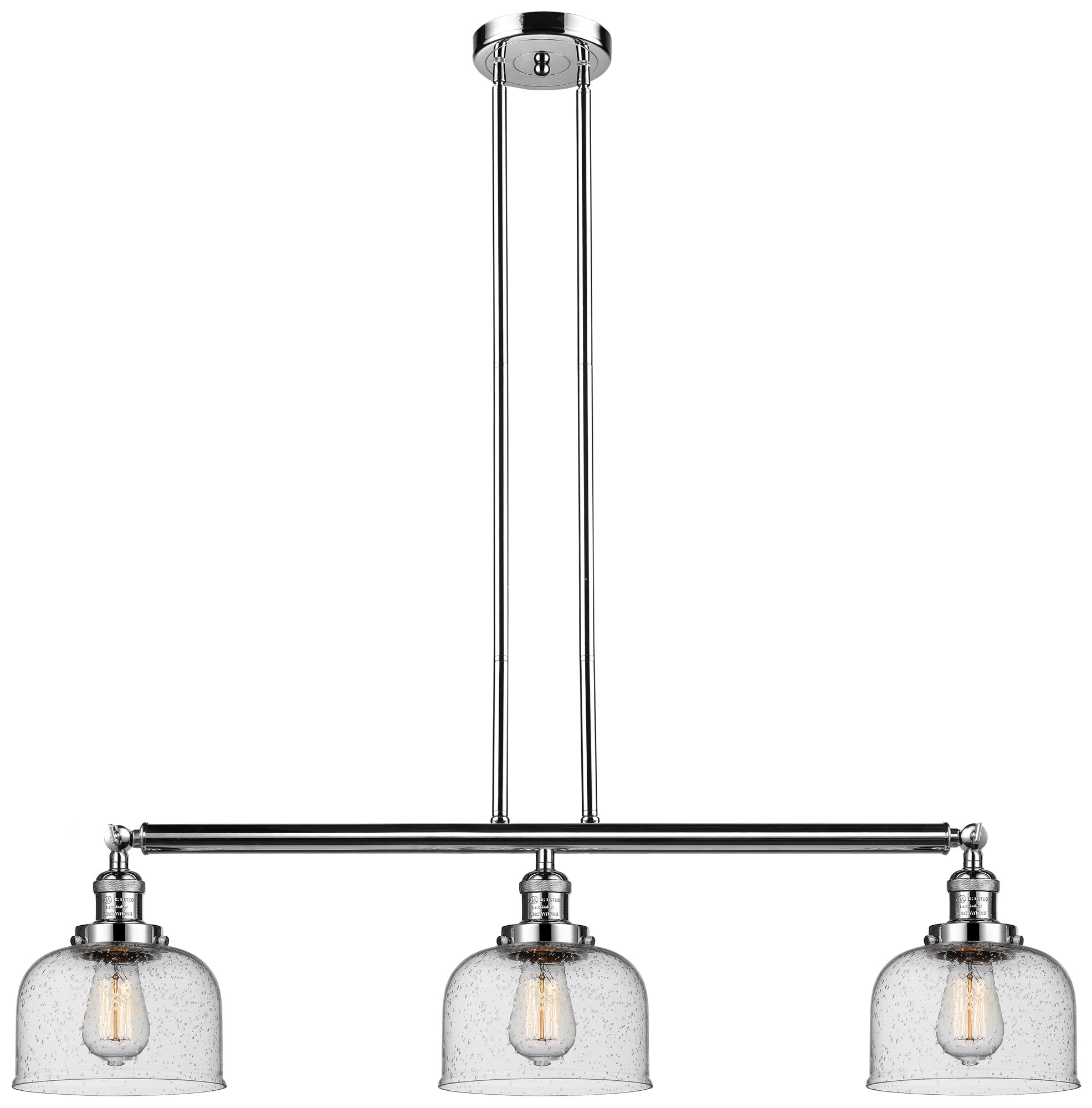 Bell 41" 3-Light Polished Nickel Stem Hung Island Light w/ Seedy Shade