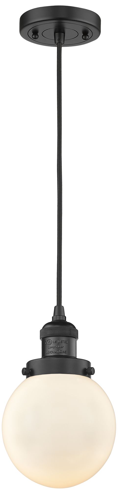 Franklin Beacon 6" Wide Matte Black Corded Mini Pendant w/ White Shade