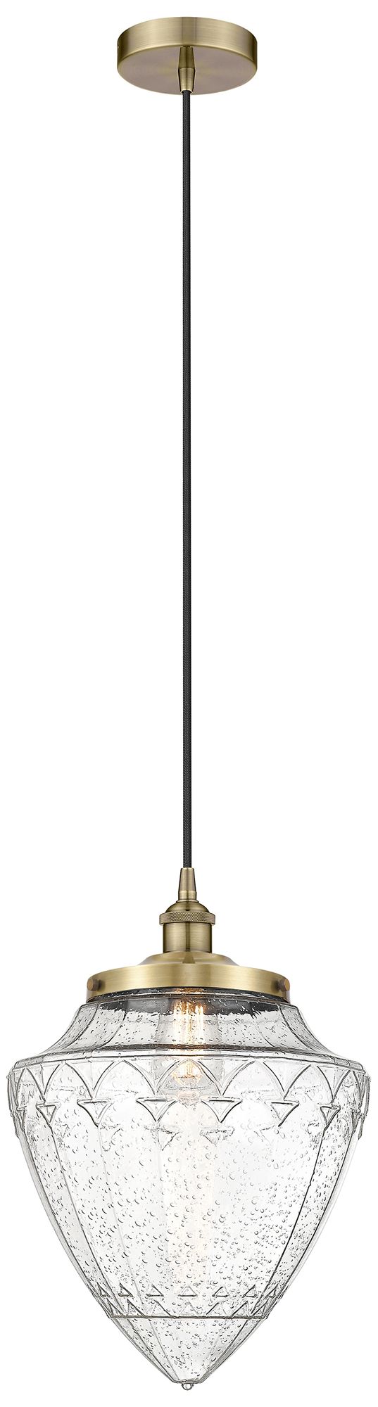 Bullet 12" Wide Antique Brass Corded Mini Pendant With Seedy Shade