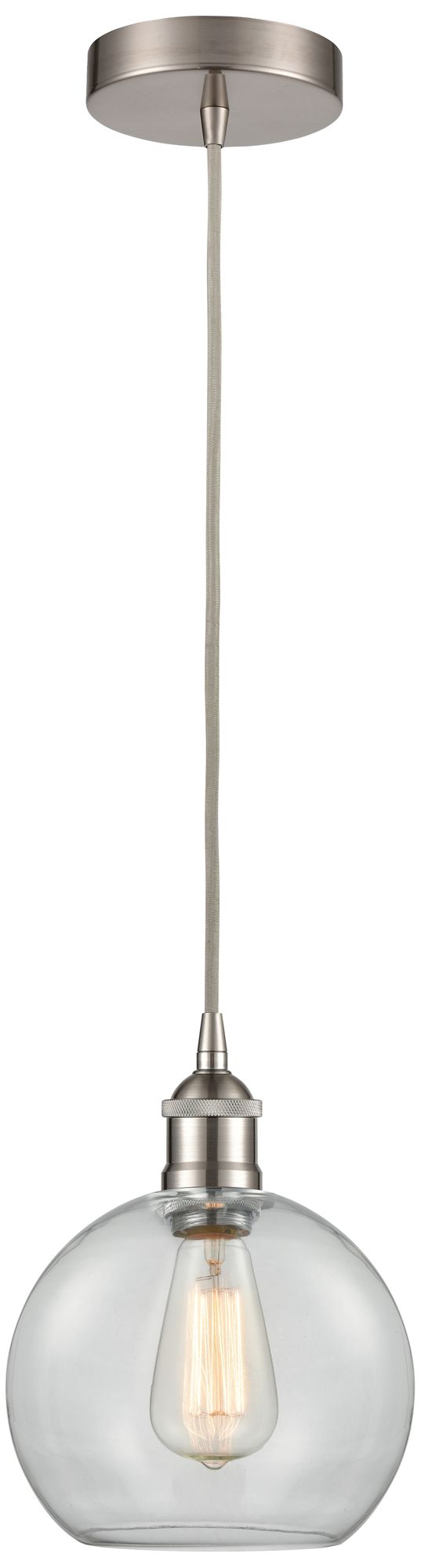 Edison Athens 8" Brushed Satin Nickel Cord Hung Mini Pendant w/ Clear