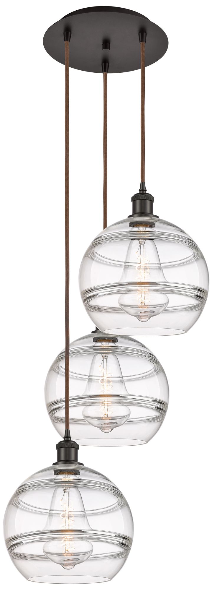 Ballston Rochester 16.5"W 3-Light Oiled Bronze Cord Pendant w/ Clear S