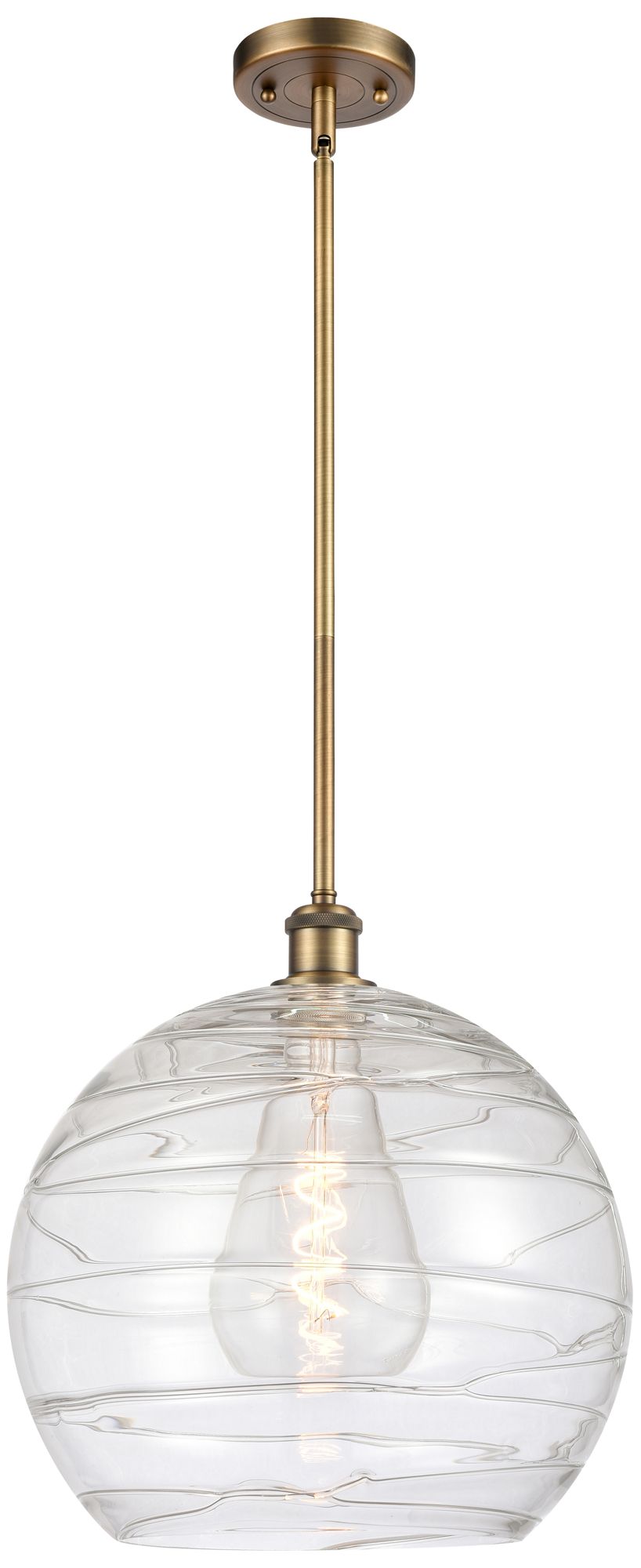 Athens 14" Brushed Brass Pendant With Clear Deco Swirl Shade