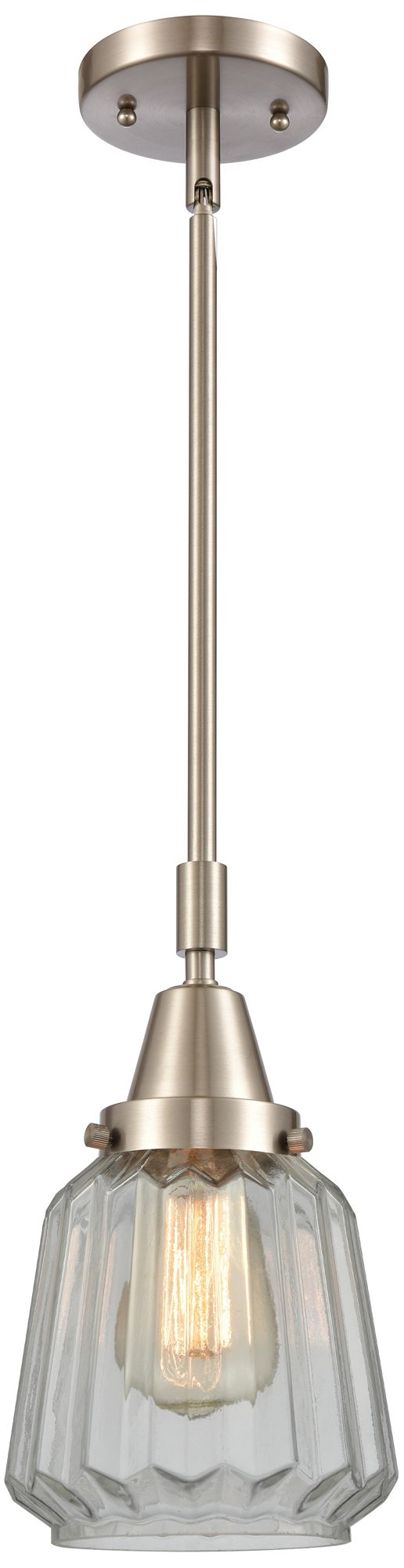 Caden Chatham 7"W Brushed Nickel Stem Hung Mini Pendant w/ Clear Shade