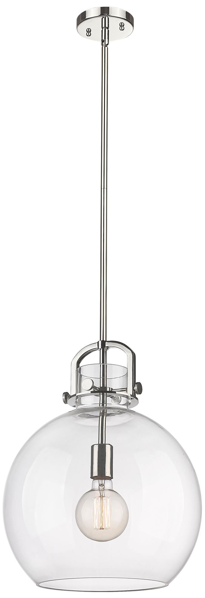 Newton Sphere 14" Wide Stem Hung Polished Nickel Pendant With Clear Sh