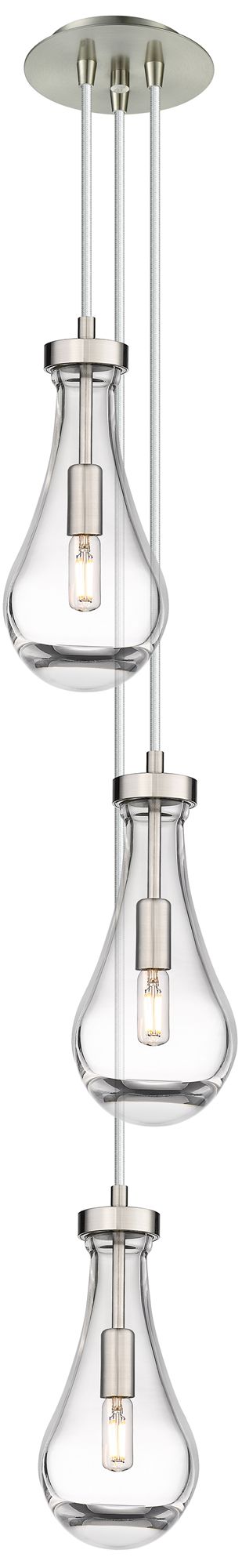Malone 13.5"W 3 Light Polished Nickel Multi Pendant w/ Striped Clear S