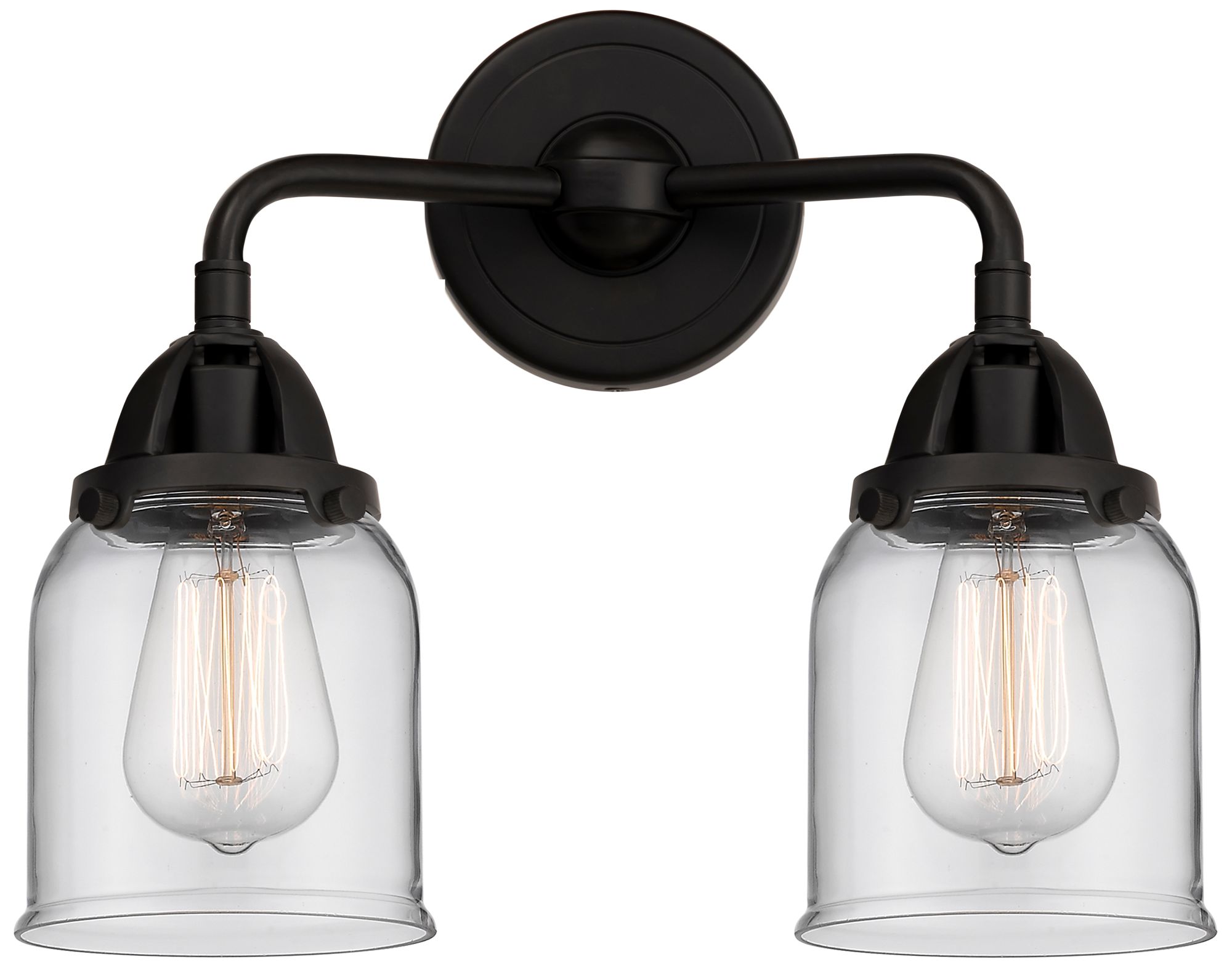 Nouveau 2 Bell 5" 2 Light 13" Bath Light - Matte Black - Clear Sh