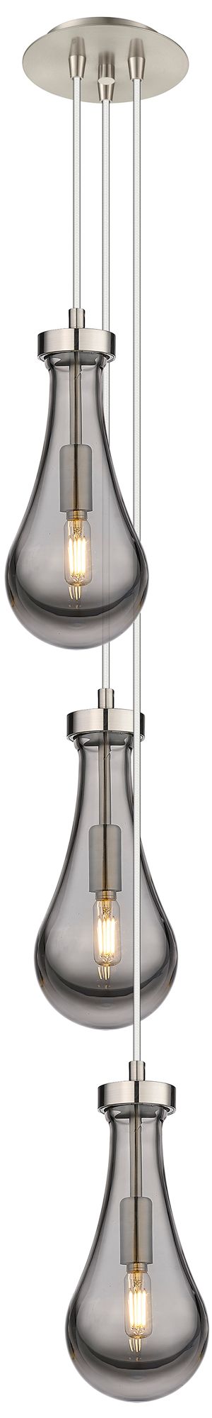 Owego 12.63"W 3 Light Brushed Nickel Multi Pendant w/ Light Smoke Shad