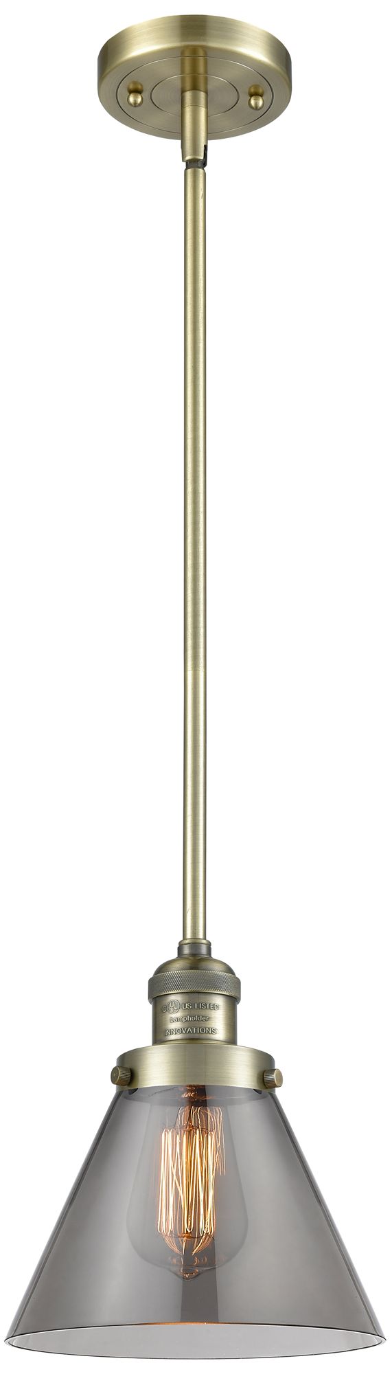 Franklin Restoration Cone 8" Brass Stemmed Mini Pendant w/ Smoke Shade