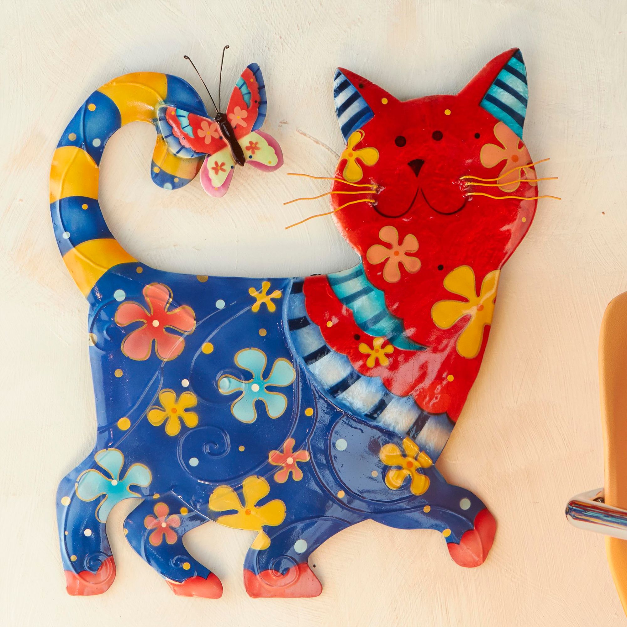 Eangee Cat 13" High Blue and Red Metal Wall Decor