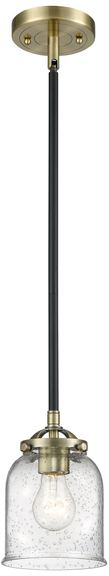 Nouveau Bell 5" Wide Black Brass Stem Hung Mini Pendant w/ Seedy Shade