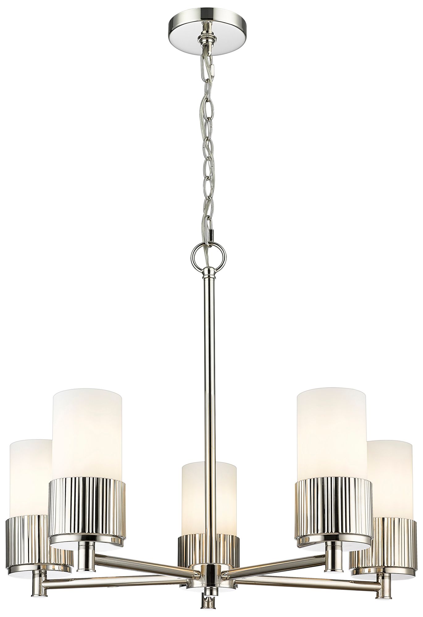 Bolivar 25"W 5 Light Polished Nickel Chain Hung Chandelier w/ White Sh
