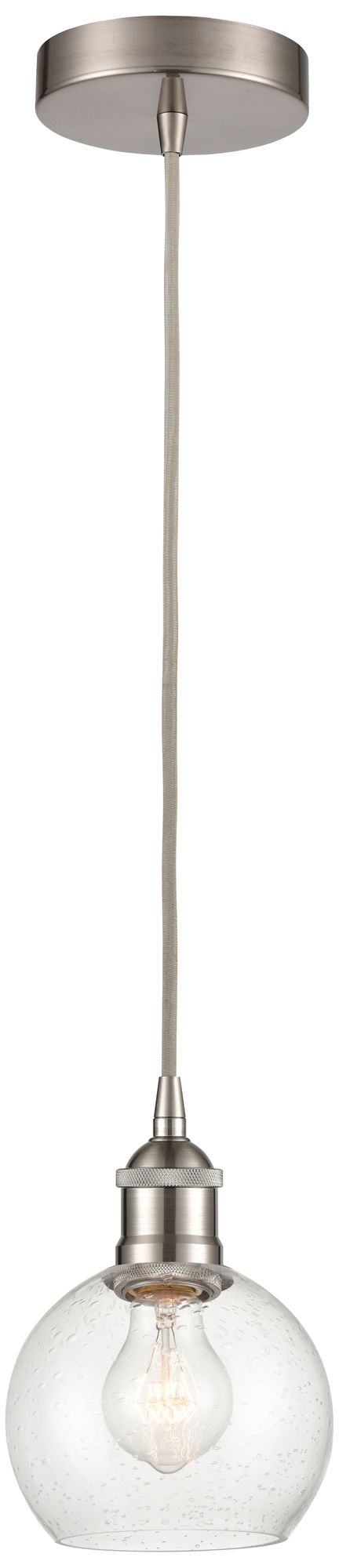 Athens 6" Brushed Satin Nickel Mini Pendant w/ Seedy Shade