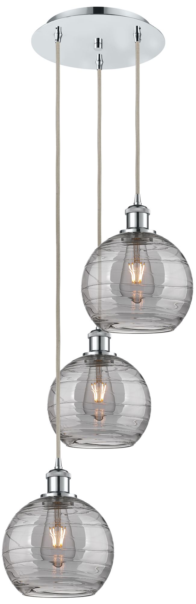 Ballston Athens 14.5"W 3-Light Chrome Corded Pendant w/ Smoke Swirl Sh
