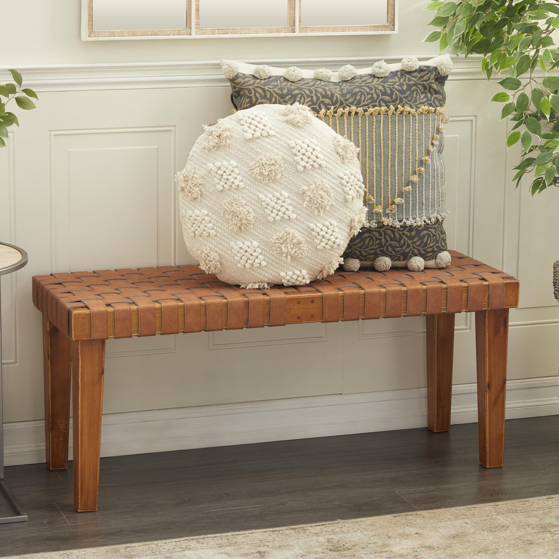 Brown Faux Leather Rustic Bench, 45" x 16" x 19"