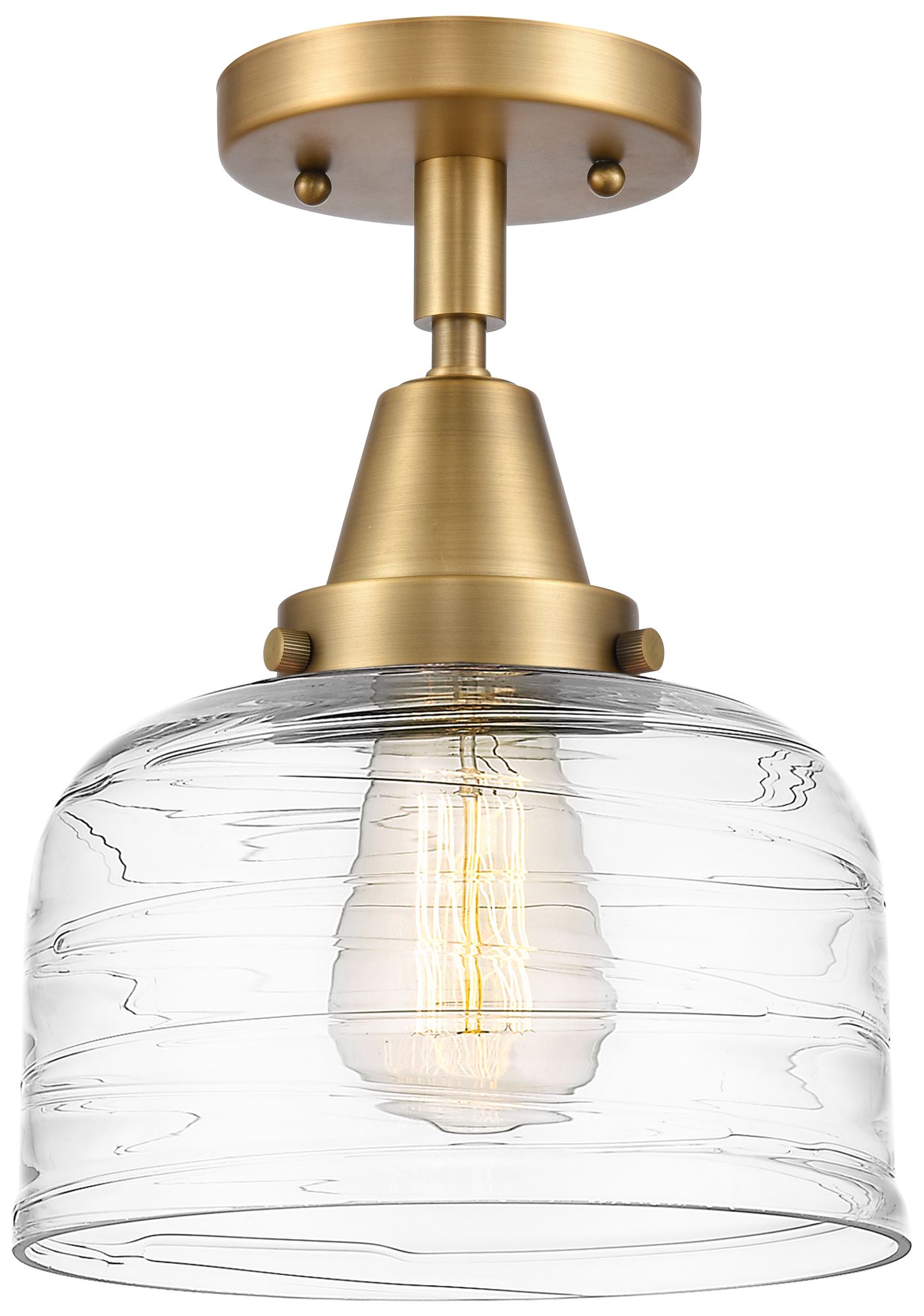 Caden Bell 8" Flush Mount - Brushed Brass - Clear Deco Swirl Shade