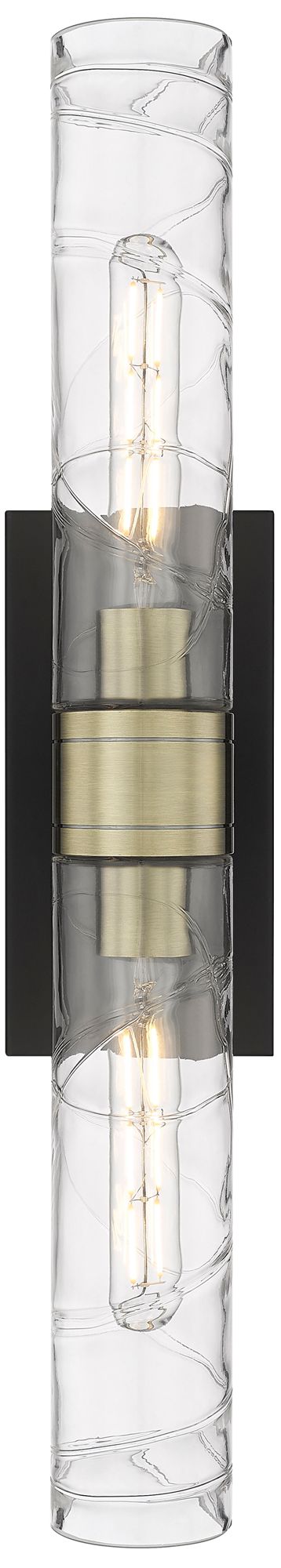 Ballston Urban 24"W 2 Light Black Brass Bath Light w/ Deco Swirl Shade