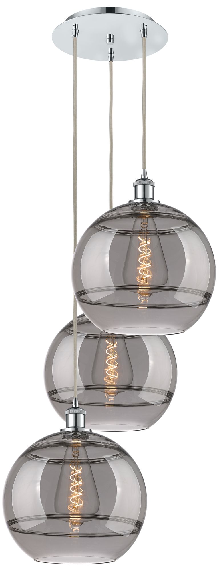 Ballston Rochester 18.5"W 3-Light Chrome Corded Pendant w/ Smoke Shade