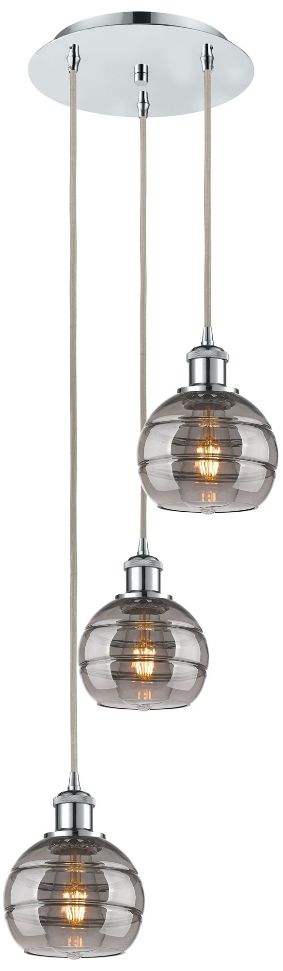 Ballston Rochester 12.38"W 3-Light Chrome Corded Pendant w/ Smoke Shad