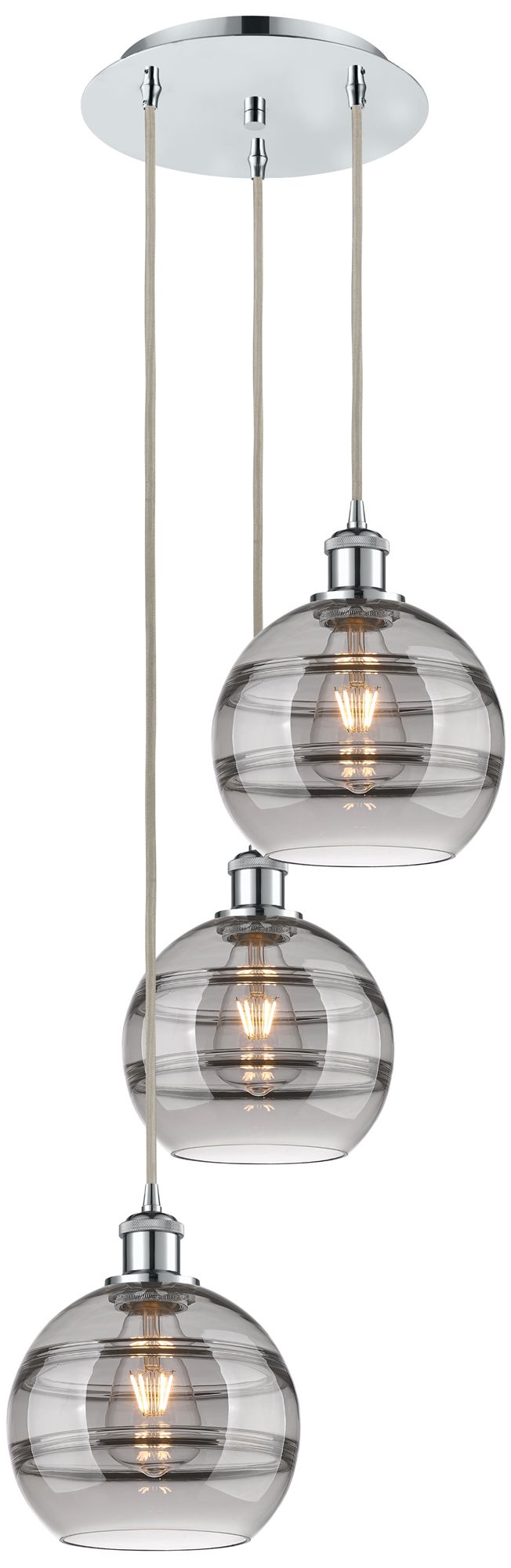 Ballston Rochester 14.5"W 3-Light Chrome Corded Pendant w/ Smoke Shade