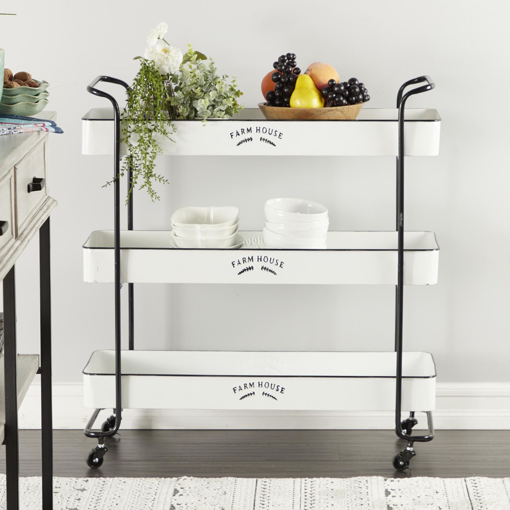 White Metal Farmhouse Bar Cart, 32" x 12" x 35"