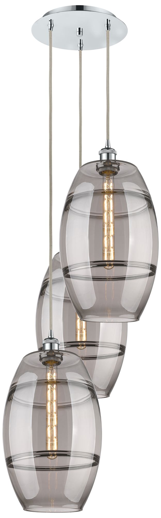 Ballston Vaz 16.5"W 3-Light Chrome Corded Pendant w/ Smoke Shade